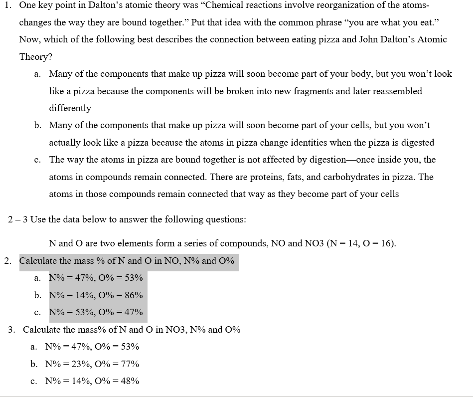 Solved 1 One Key Point In Dalton S Atomic Theory Was Chegg Com