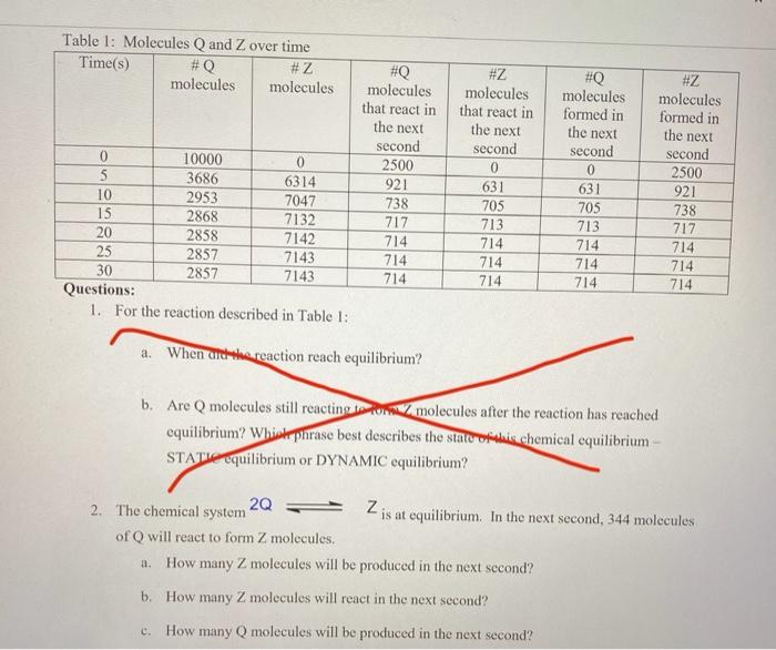 Solved Table 1 Molecules Q And Z Over Time Time S Q Z Chegg Com